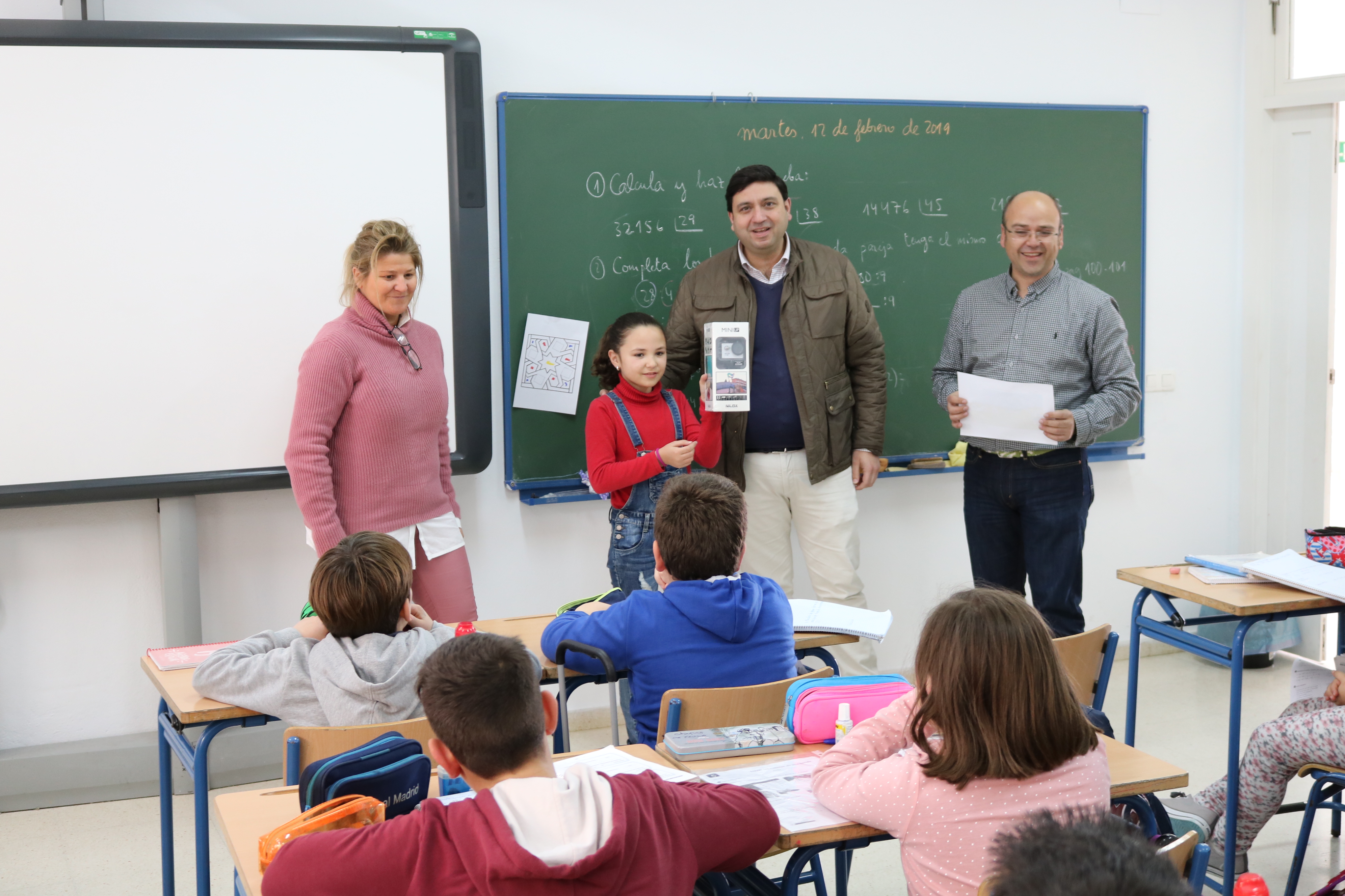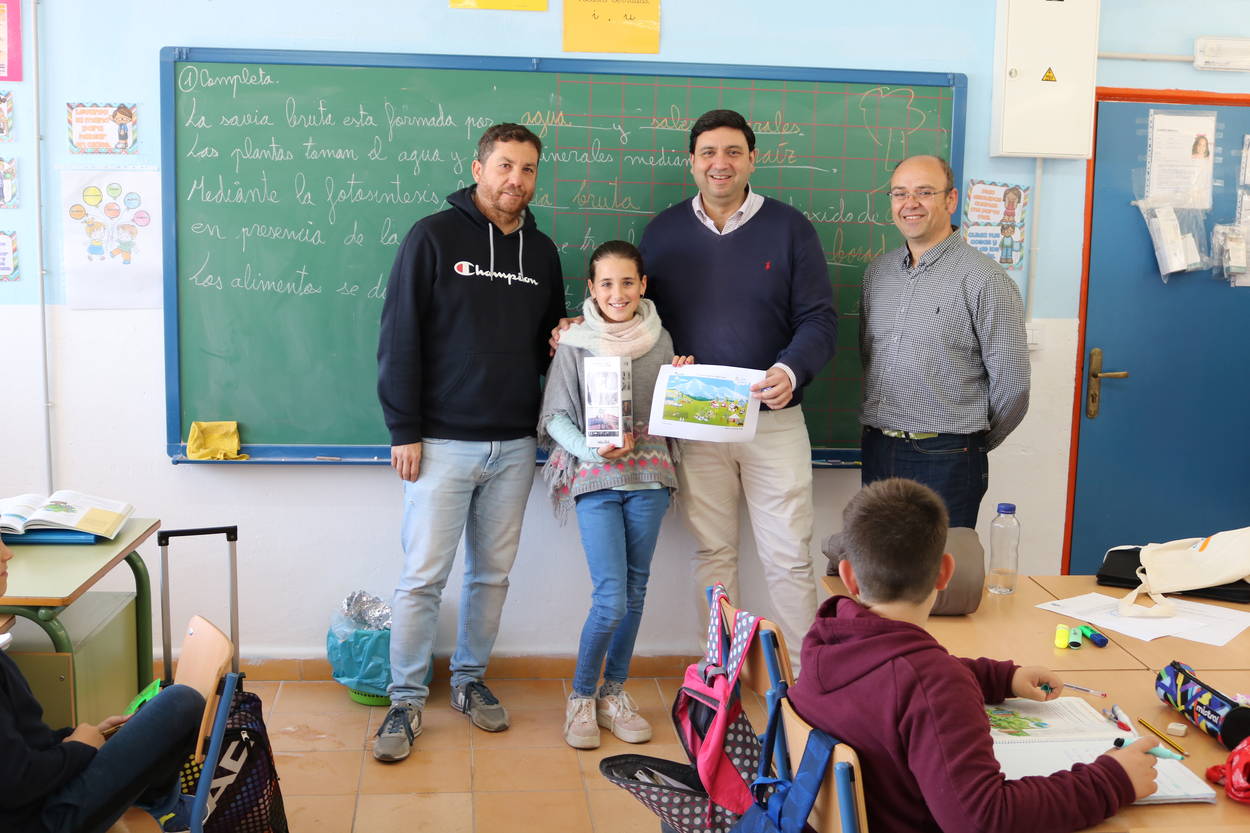 El acto de entrega de premios se ha llevado a cabo en el colegio de cada una de las niñas y ha contado con la asistencia del concejal delegado de Salud, Raúl García, y el jefe de servicio de Aqualia en Lora, Antonio Barba.