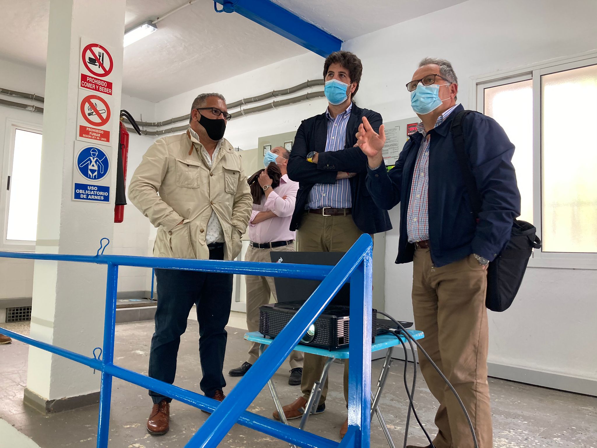 El alcalde de San José del Valle, Antonio González, acompañado por técnicos y el delegado de Aqualia, Enrique Reina, ha conocido de primera mano la nueva instalación que la empresa gestora del Servicio Municipal de Agua ha construido para eliminar la cal del agua que consumen los vallenses en sus domicilios y comercios.