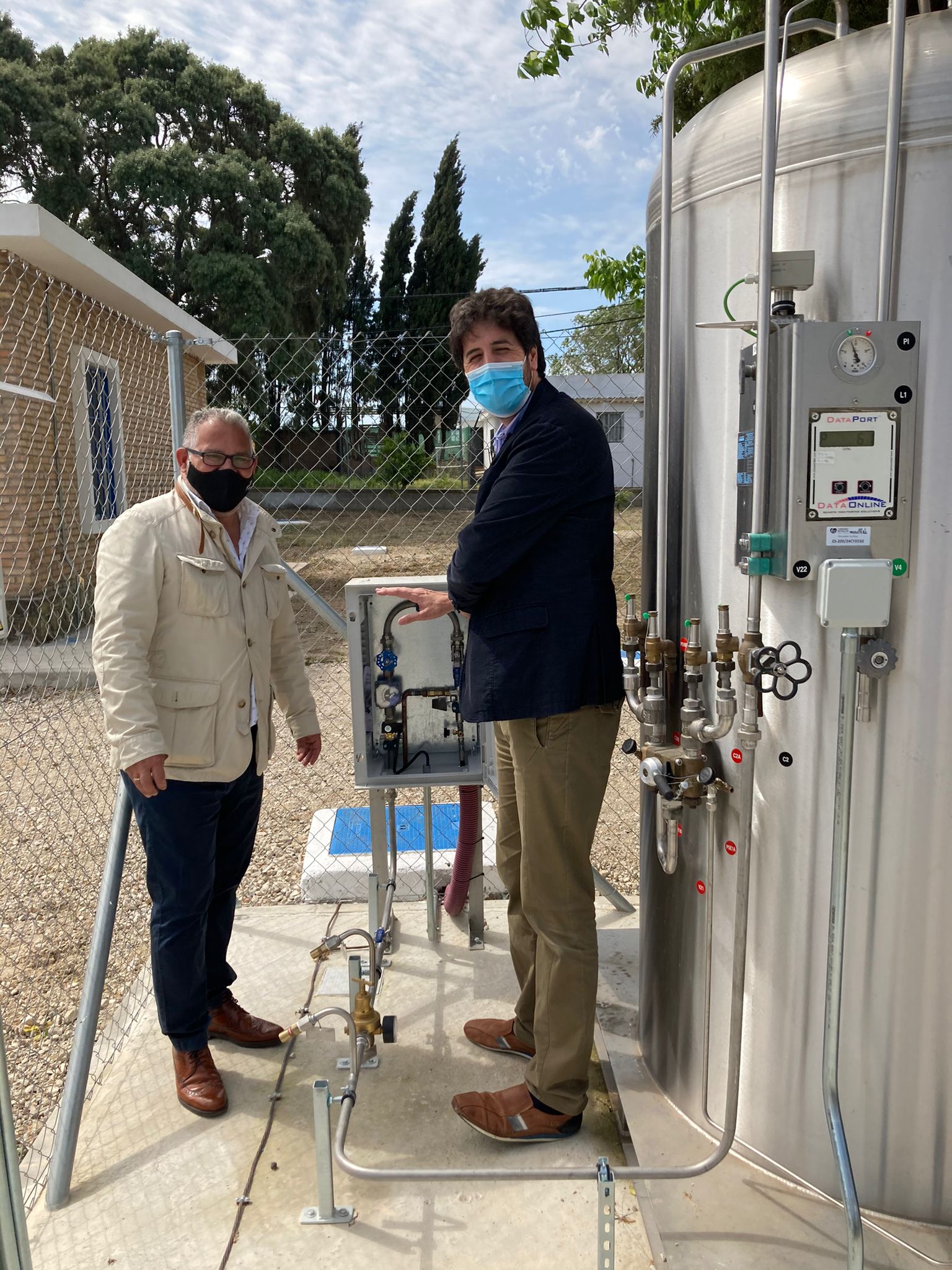 Instalada en terreno anexo a la estación elevadora de La Montarasa, en el barrio de Brioles, esta descalcificadora ha empezado ya a funcionar inyectando dióxido de carbono (CO2) en las tuberías que llevan el agua desde este bombeo. De esta forma, se baja el pH del agua suministrada y se reduce el carácter incrustante de la misma. “Por supuesto ninguna de estas sustancias son perjudiciales para la salud de nadie, y toda la instalación cuenta con los permisos de la Delegación Territorial de Salud de la Junta de Andalucía, que ha comprobado su correcto funcionamiento antes de la puesta en marcha” – ha puntualizado Enrique Reina.