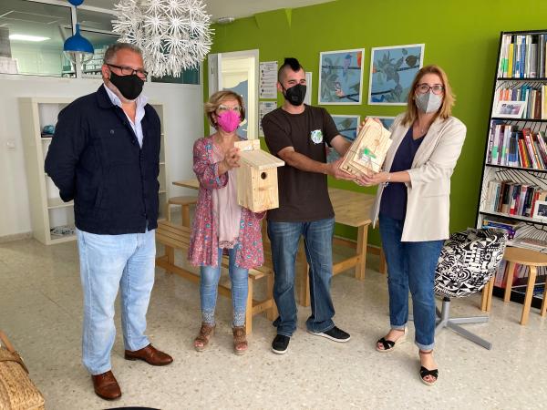 Personas con discapacidad intelectual realizan el ensamblaje de las cajas-nido, que después se instalarán en árboles de patios de centros educativos de la ciudad y en las zonas verdes de la depuradora Guadalete