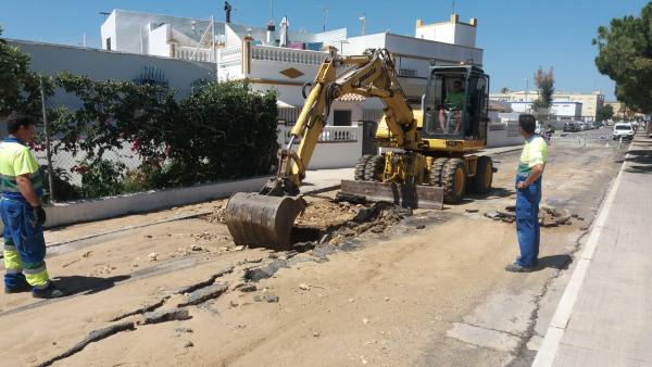 Aqualia trabaja en la reparación de la rotura producida en la tubería general de abastecimiento a Rota
