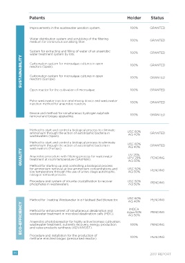 SUSTAINABILITY  Carbonation system for microalgae cultures in open    100%         GRANTED