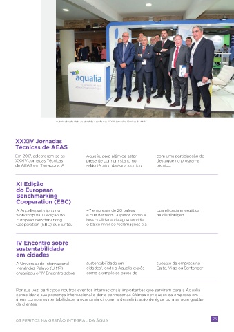 Por sua vez, participou noutros eventos internacionais importantes que serviram para a Aqualia